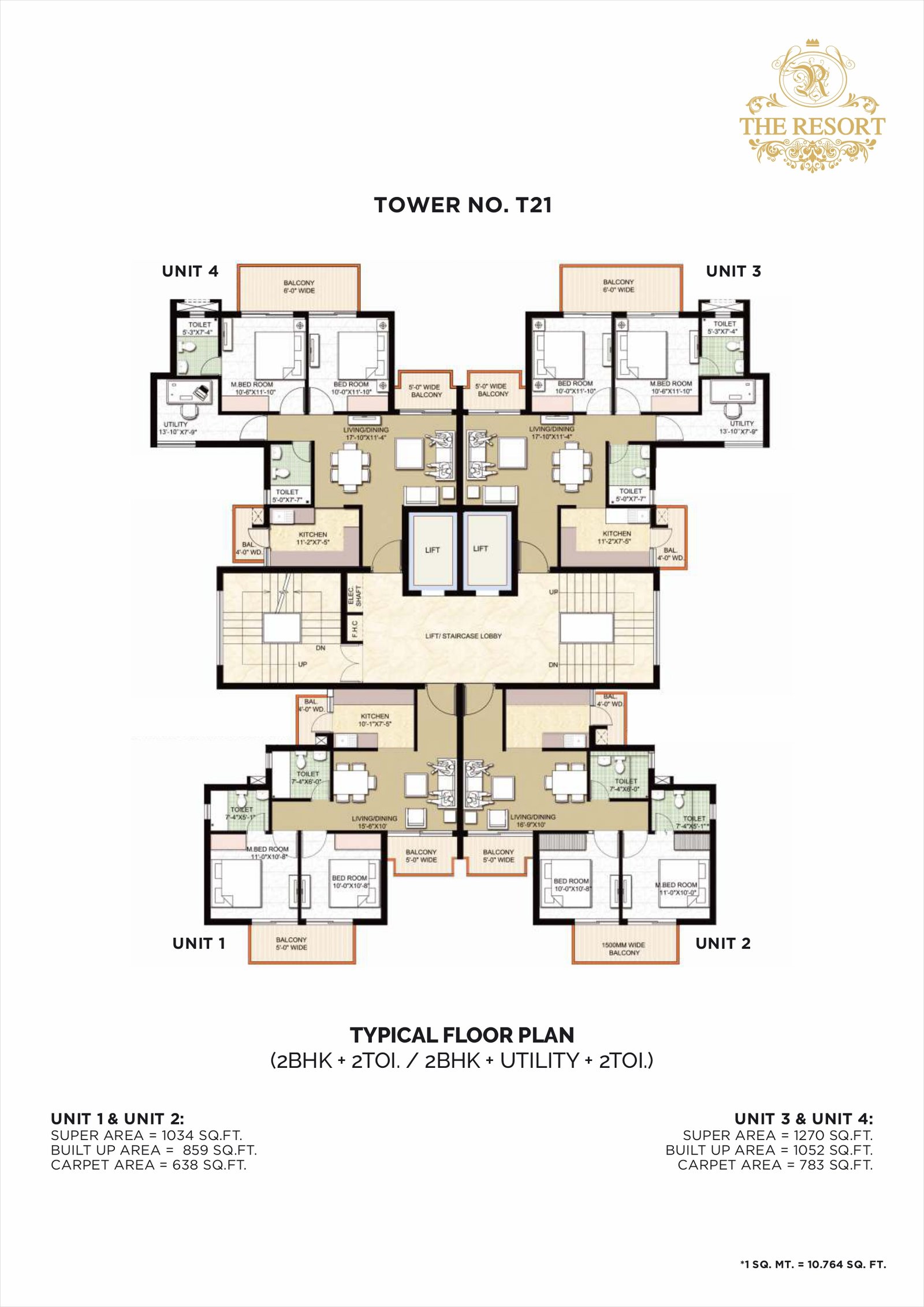 Unit TypeApprox Built-Up Area (sq ft)Features